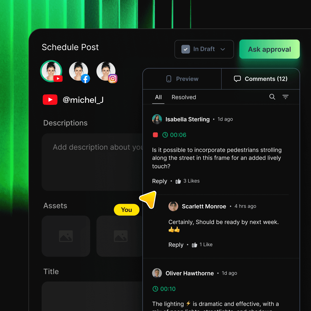 Enable your team to provide immediate feedback and secure approvals, ensuring that every piece of content is polished and on-brand before publication