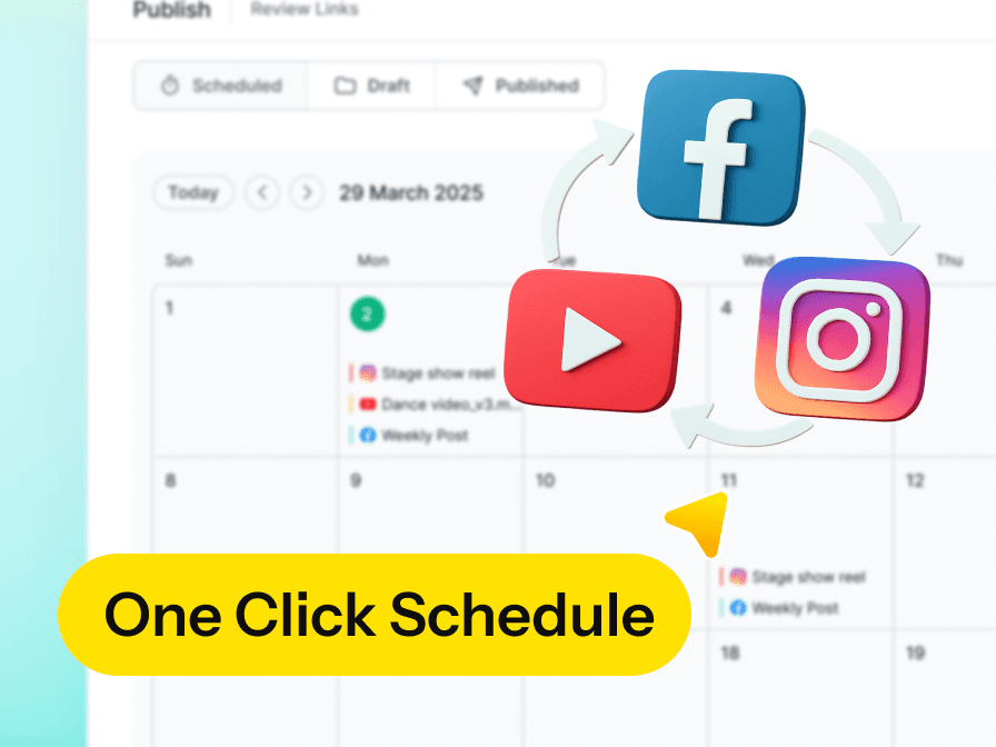 Moments matter, especially when your audience is watching in real time. Flekh Publish lets you schedule and post clips, highlights, or teaser content across Instagram, YouTube, Facebook, and more without leaving your workflow. You can preview how each asset will appear and go live in sync with the moment.