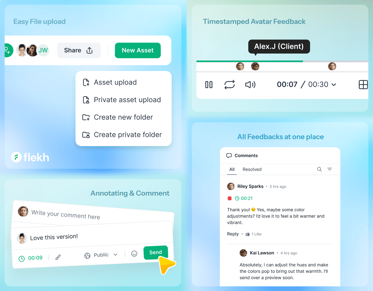 Flekh Collab helps you stay in control of your creative process. Upload your visuals, tag your editor or brand partners, leave direct comments, and keep all feedback in one place. Need to tweak a reel thumbnail or fine-tune a caption? Annotate right on the asset. You stay in the creative flow, with full visibility and less back-and-forth.