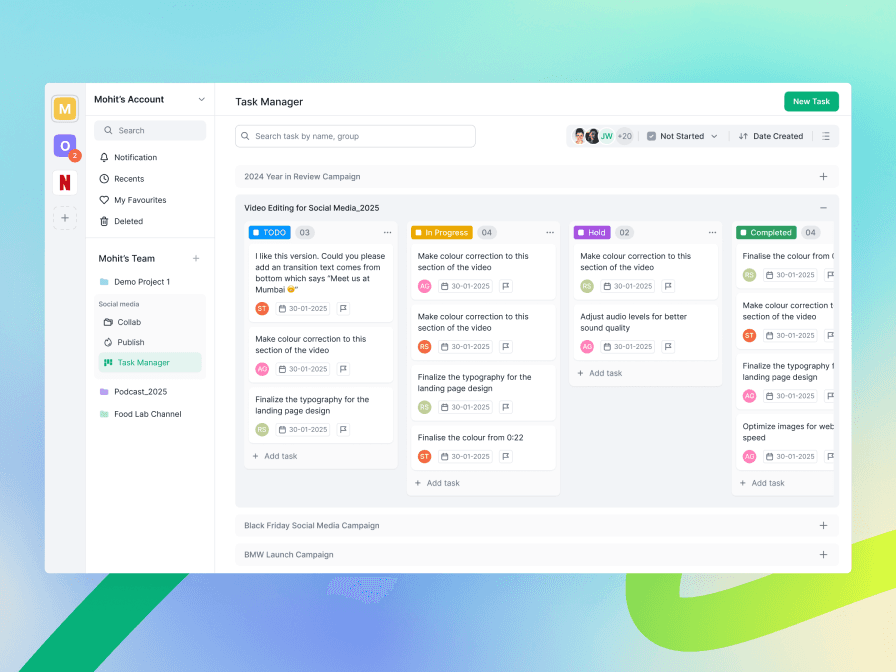 Flekh Publish allows creative teams to manage and schedule trailers, teasers, and promotional content across Instagram, YouTube, X, and more from one streamlined dashboard. It helps align teams by providing a shared space to collaborate on visuals, refine captions, and preview how campaigns will appear on each platform. With built-in approval tracking, teams can maintain control over every asset before going live, reducing errors and saving time.